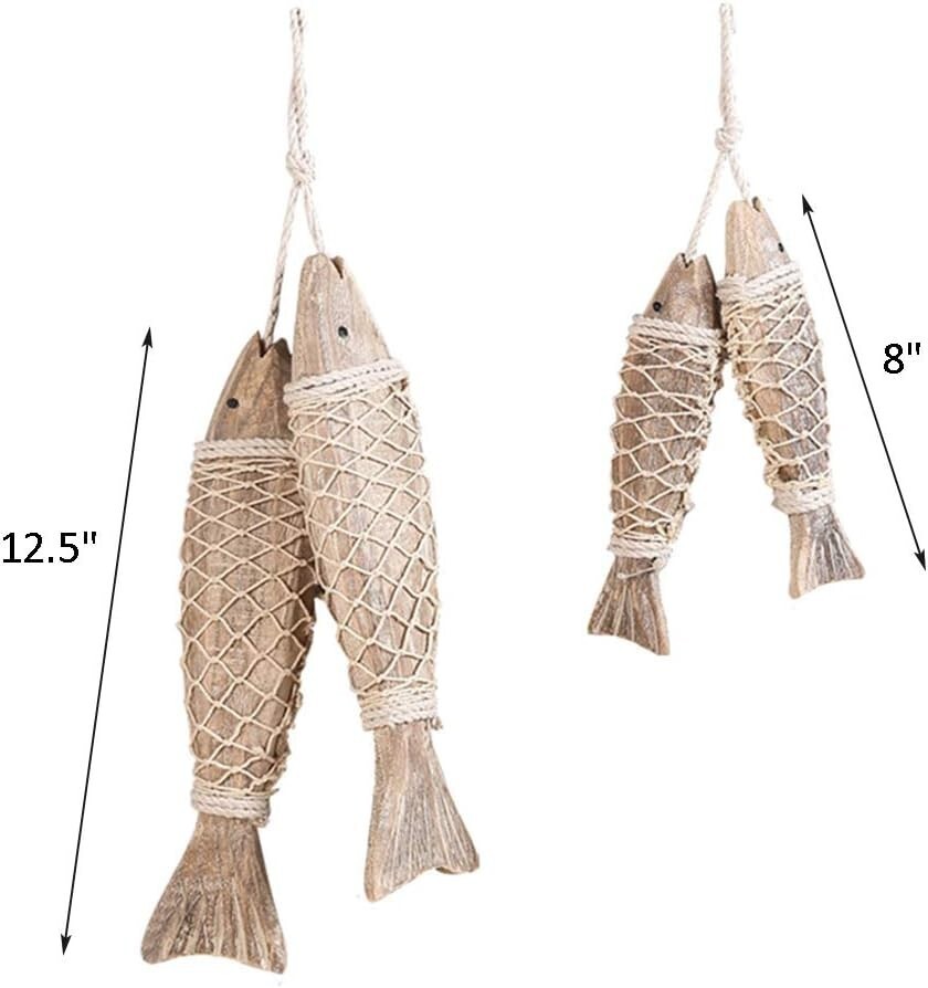 Features a distressed whitewash finish, each fish beautifully wrapped with fishnet for authentic nautical flair.