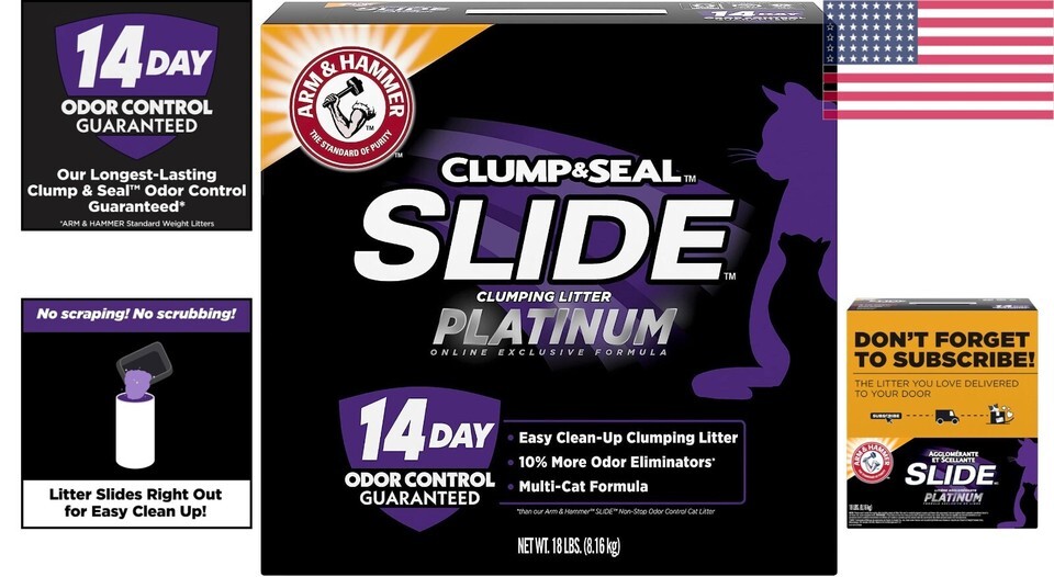 Arm Hammer SLIDE Platinum Cat Litter - 14 Days of Odor Control Easy Cleanup