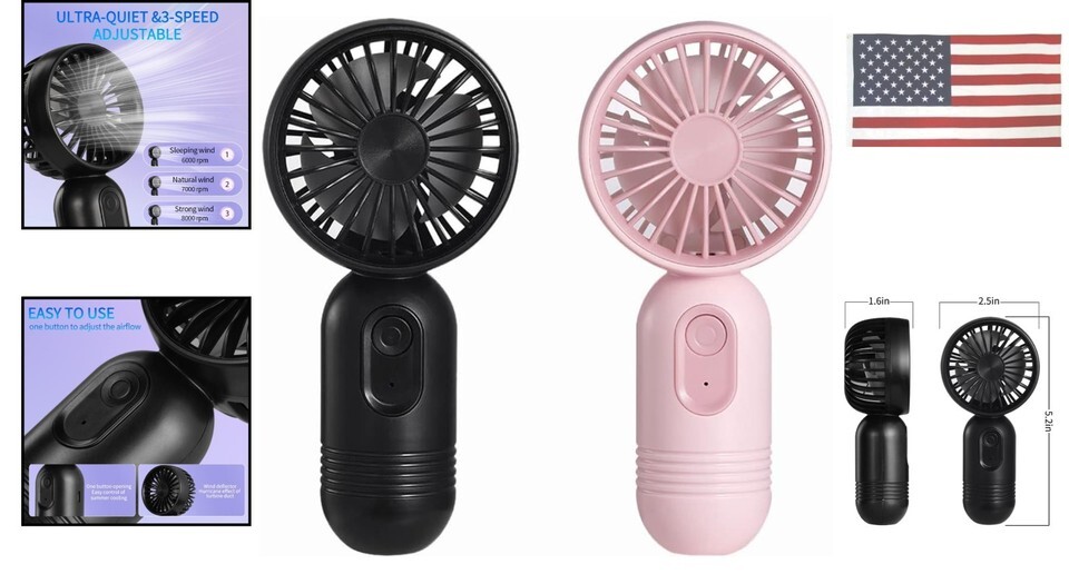 Camping Fan Rechargeable, Mini Portable Handheld 2-Pack, USB Battery Powered Small Personal, 3 Speeds, Black Pink