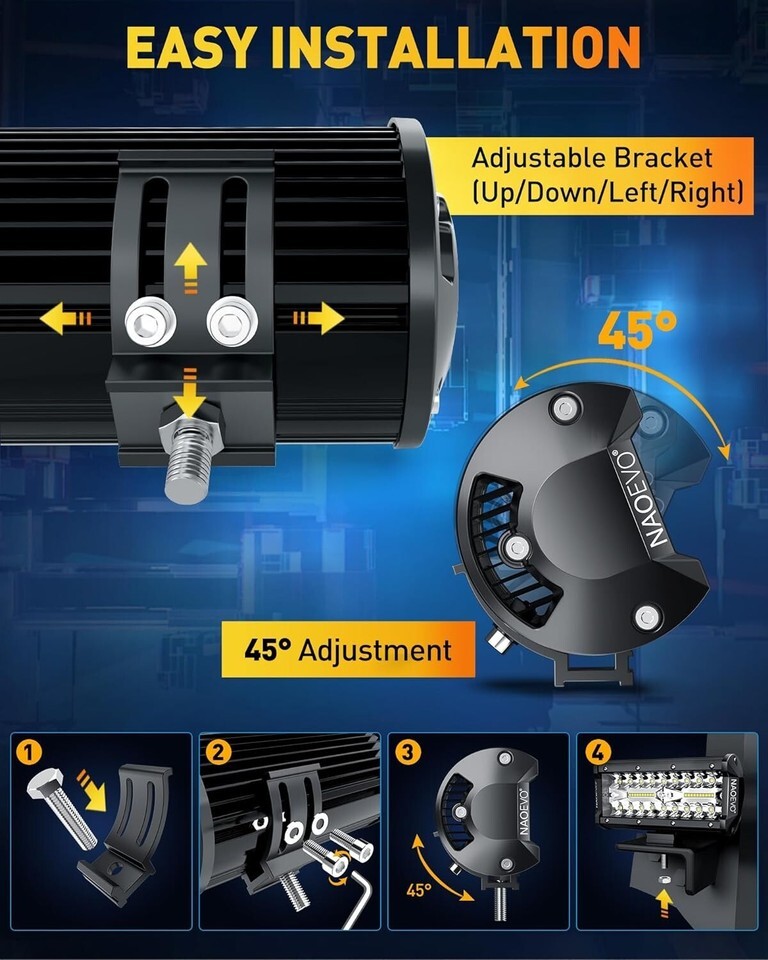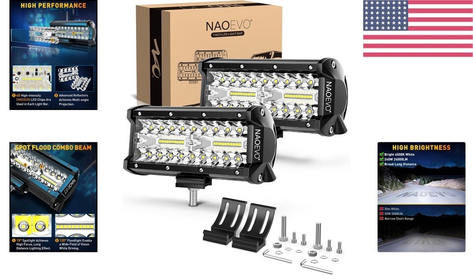 Super Bright Off-Road Lights: Delivers an impressive 240W and 24000LM, producing a bright 6500K white light for enhanced visibility.