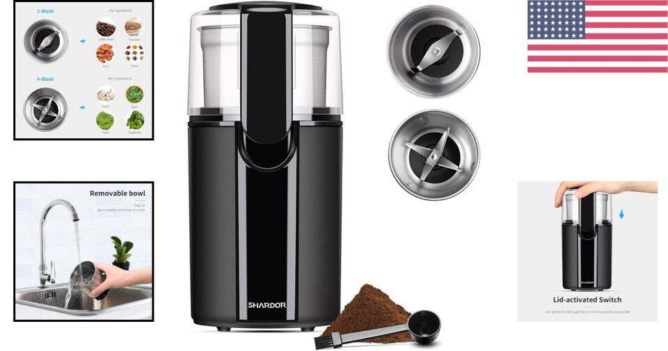 Everything You Need: Comes complete with a coffee grinder, a 2-blade cup, a 4-blade cup, a 2-in-1 coffee spoon with brush, user manual, 2-year warranty, and friendly customer service.