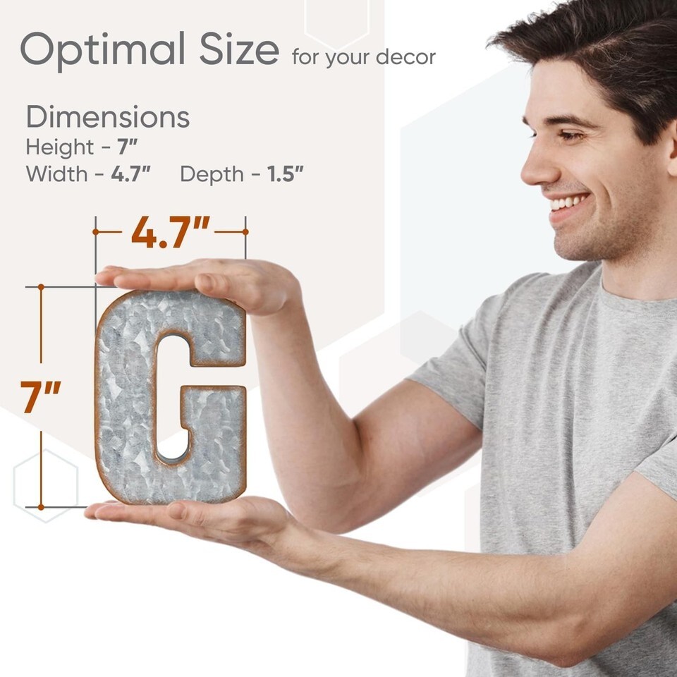 Galvanized 3D Letter G - 7 Inch Rustic Home Decoration for Living Spaces