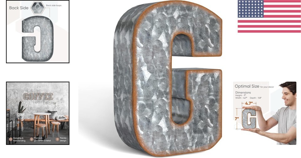 Elevate your home decor and add a personal touch with the Galvanized 3D Letter G. A perfect choice for your living room, kitchen, or bedroom, it effortlessly combines style with meaningful design. Order yours today and create a cozy, personalized atmosphere!