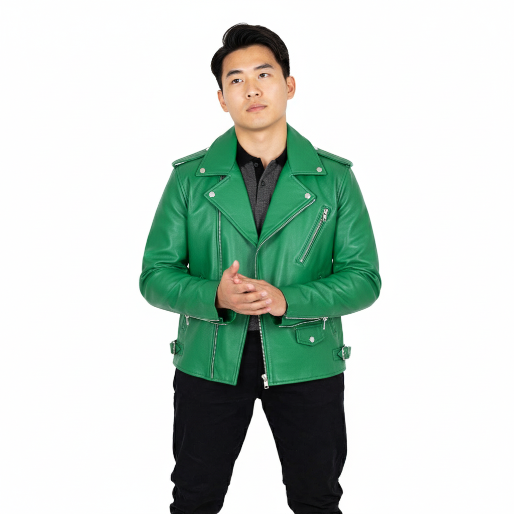 New Men's Jacket Green Lambskin Genuine Handmade Leather Soft Causal Motorcycle