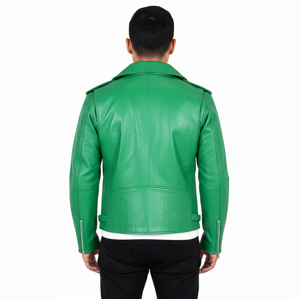 New Men's Jacket Green Lambskin Genuine Handmade Leather Soft Causal Motorcycle/MN