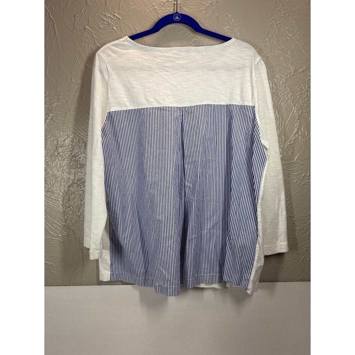 Vineyard Vines White Seersucker 3/4 Length Sleeve Shirt Womens Top Size Large