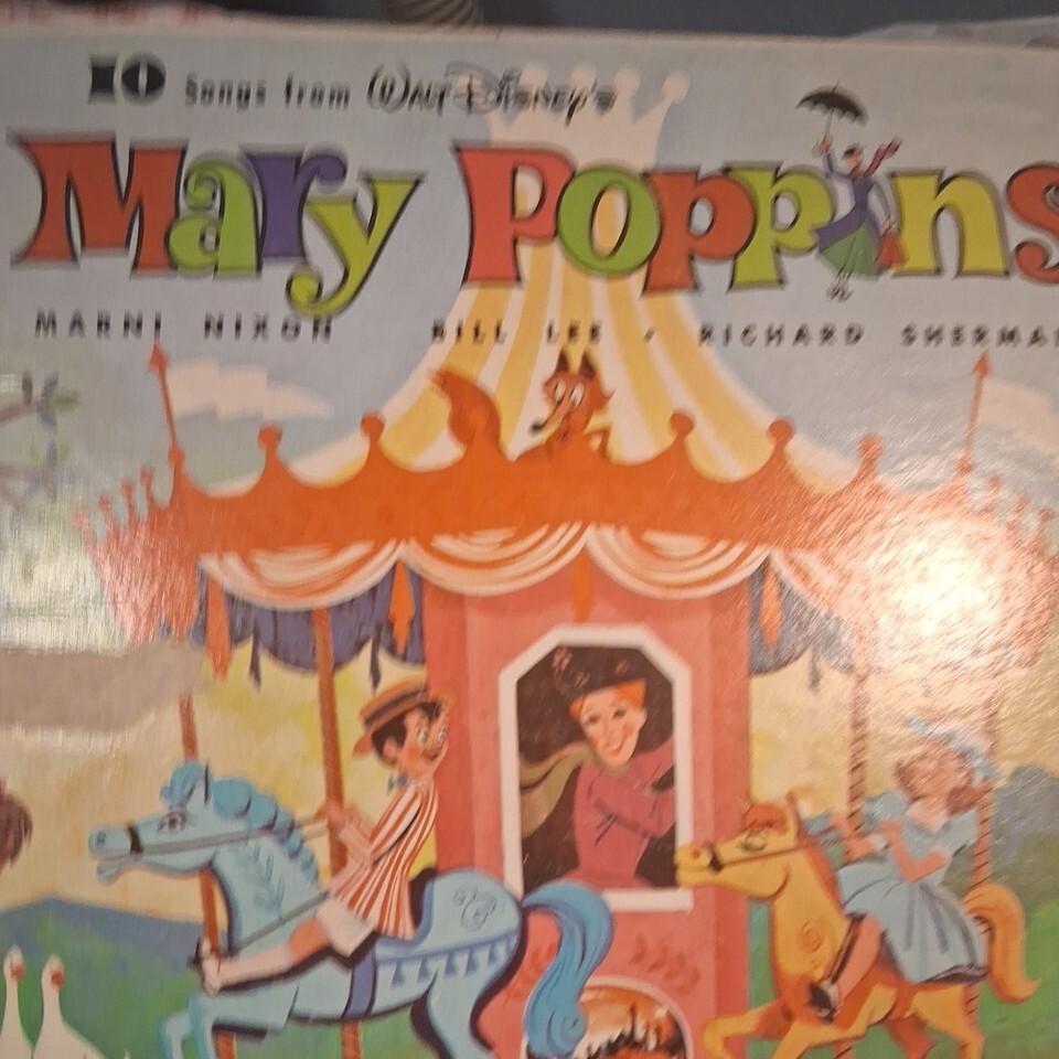 The product is a vinyl LP record titled "10 Songs From Walt Disney?s Mary Poppins" released in 1964 by Disney. The album features songs from the classic Disney movie, performed by artists including Richard Sherman, Marni Nixon, and Bill Lee. With a speed of 33 RPM and a 12" size, the record is perfect for fans of musicals, sing-alongs, and 1960s music. This nostalgic piece of children's music history is a must-have for collectors of vintage Disney sounds.