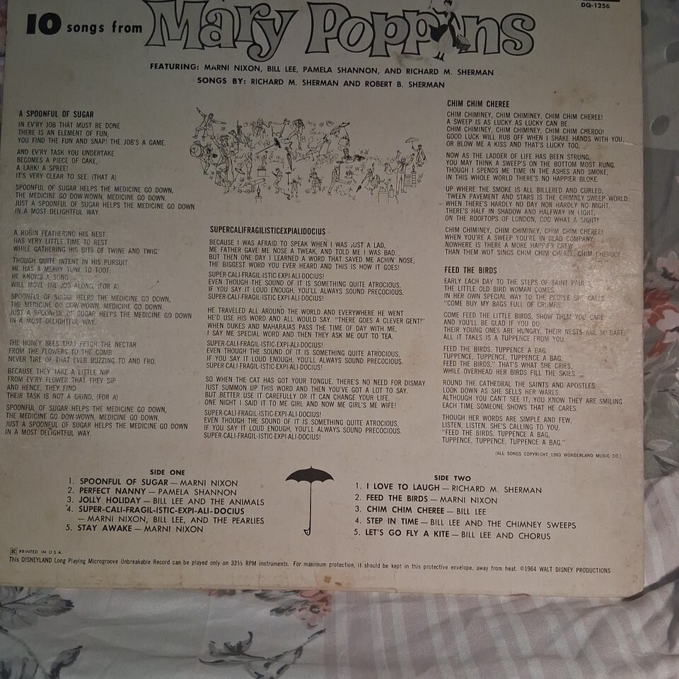 10 Songs From Walt Disney’s Mary Poppins 1964 Disneyland Records DQ-1256