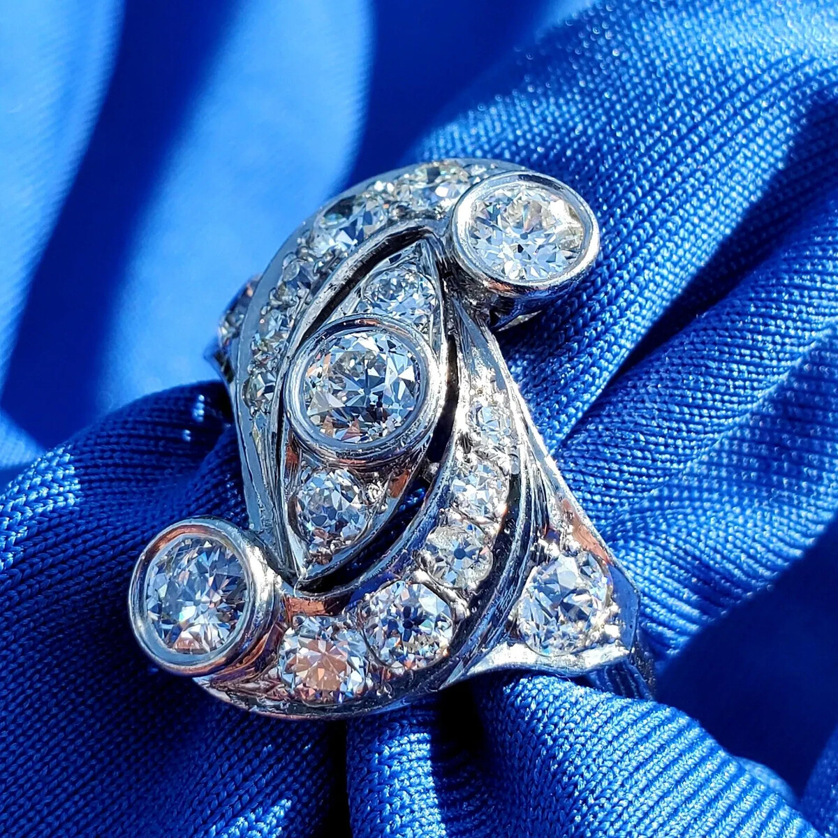 Earth mined Diamond European cut Deco Engagement Ring Vintage 14k Gold Size 8.75