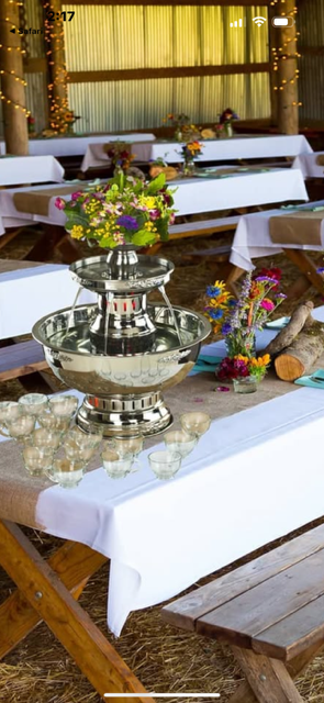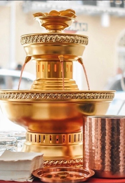 Gold Anodized Aluminum Multi-Beverage Champagne Fountain. This fountain can create a unique self-serving beverage station ? which can alleviate the pressure on bar staff or create a station specifically for a signature drink at cocktail hour, happy hour, location for a transitioning space, or a place created just for the kids. All of our fountains serve alcoholic and non-alcoholic beverages: punch, champagne, sweet tea, lemonade and cocktails. In fact, if you can mix it behind the bar, you can pour it into a fountain!