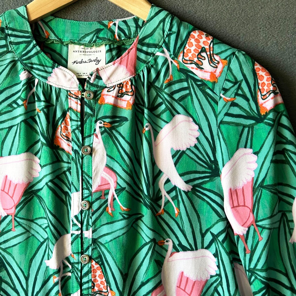 Kendra Dandy Anthropologie Camisa Buttondown Shirt Green Pink - Women's Size 0