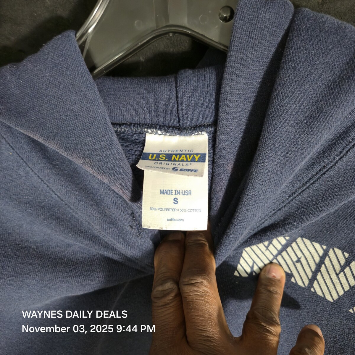 US Navy Hoodie Mens Small Blue Pullover Hooded Sweatshirt Soffe Military USA
