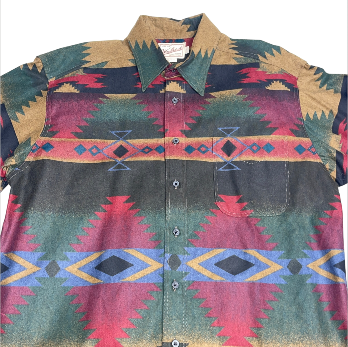 Vintage 90s Woolrich Shacket Shirt Mens L Aztec Southwestern Flannel Shirt New
