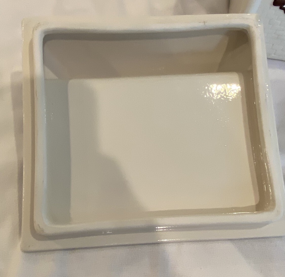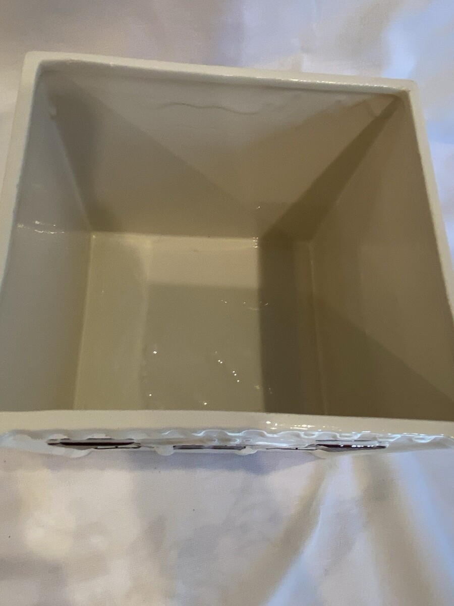 Vintage Mancer House Ceramic Cookie Jar White w/ Brown Italy