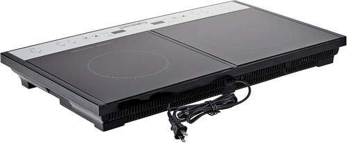The Double Induction Cooktop offers the ultimate in cooking flexibility, adding two induction burners to any kitchen, or any place without a kitchen! Induction technology offers an exceptional cooking experience, with instant heat-up and consistent, precise heat throughout cooking. Each burner has its own heat setting control, 150-minute timer and On/Off switch. The smooth glass surface looks sleek and wipes clean. It's ideal for entertaining and holidays when cooking for a crowd. And its compact and portable size makes it ideal for small spaces without a kitchen, such as dorm rooms, boats, patios or RVs. This is a versatile and powerful tool that's a great addition to any kitchen - big or small! Refer instruction manual before use. Features: Induction technology for fastest heat-up|Uses up to 70% less energy than conventional cooktops|Bright LED displays|Left burner: on/off 8 heat settings 150-minute timer|Right burner: on/off 5 heat settings 150-minute timer|Heat shuts off automatically 30 seconds after pan is lifted off|Safe exhaust-free and flame-free cooking|Even heating ? no hot spots|Must use with induction-ready cookware.