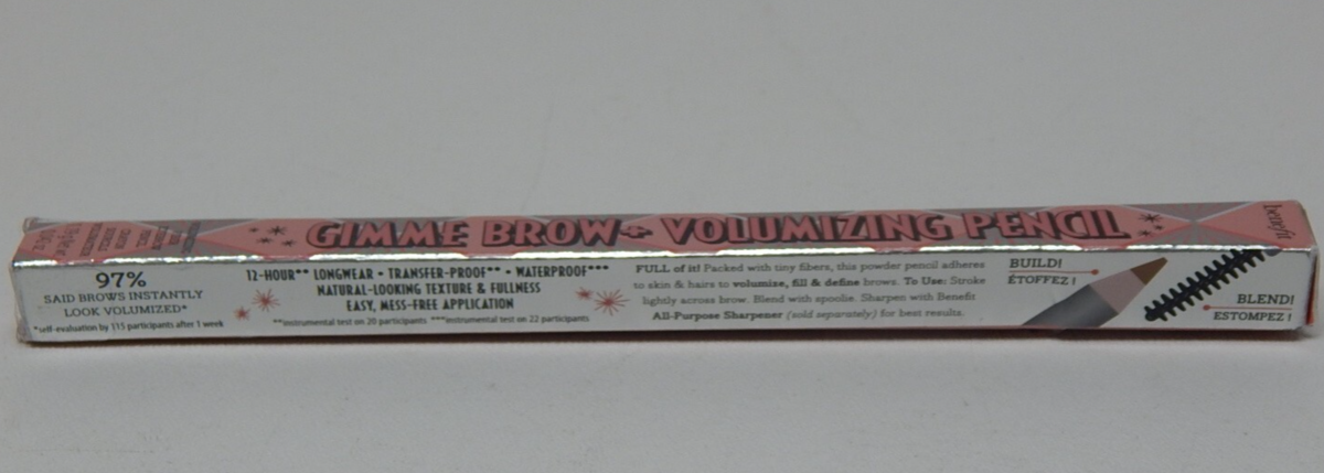 Achieve full, natural-looking brows on the go with the Benefit Gimme?Brow+ Volumizing Fiber Eyebrow Pencil (0.042?oz / 1.19?g) in Shade?03 Warm Light Brown, brand new. This award-winning pencil combines fibers + waterproof powder to fluff, define, and volumize brows effortlessly?all with built-in spoolie for easy blending.