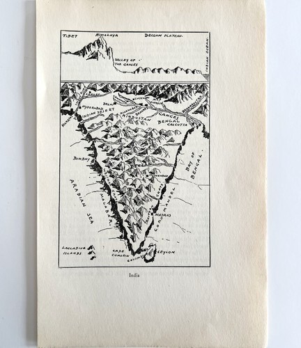 1932 India Interpretive Map Print Van Loon Geography Bengal Arabian Sea Art