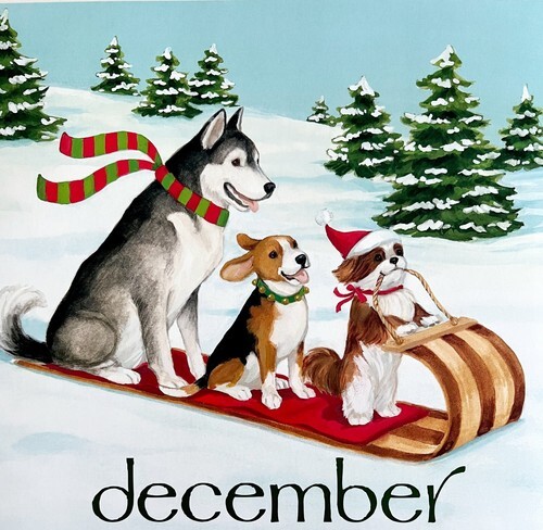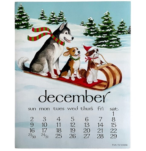 Dogs Sledding In December Dog Days Poster Calendar 14 x 11" Art Leigh DWDDCal