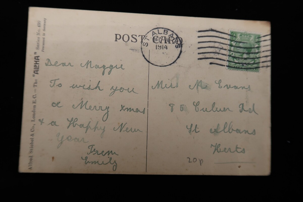 Antique Postcard Happy Christmas ALPHA Series Alfred Stiebel Londan Germany 1914