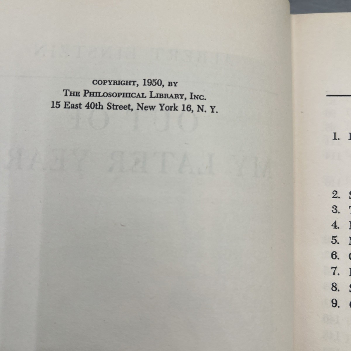 Out Of My Later Years ~1950 HC~ Albert Einstein Mass Gravity Energy Light Speed