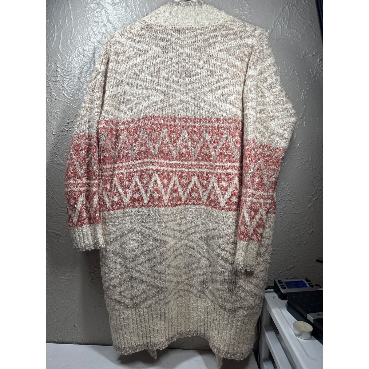 JOlE Womens Open Front Longline Knit Cardigan Sweater Boho Celtic Wool Size Small