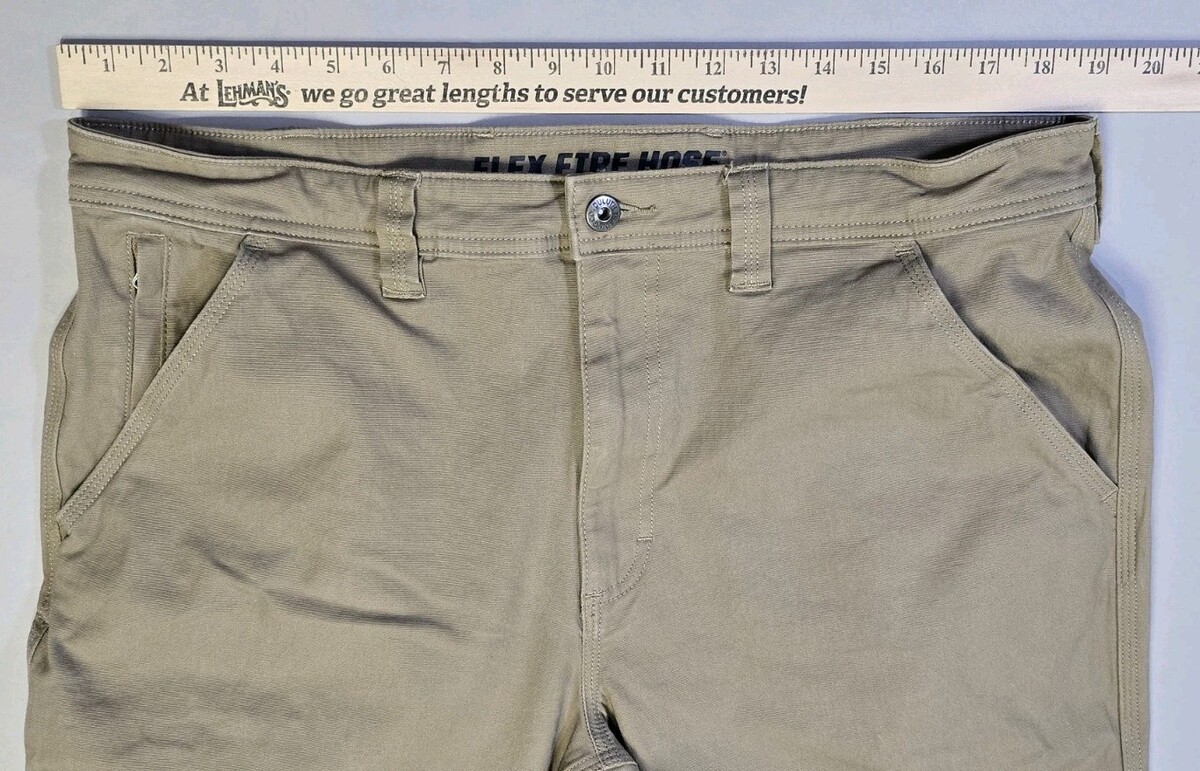 Duluth Trading Pants Mens 38X34 Khaki Canvas Flex Fire Hose Relaxed Fit Pockets