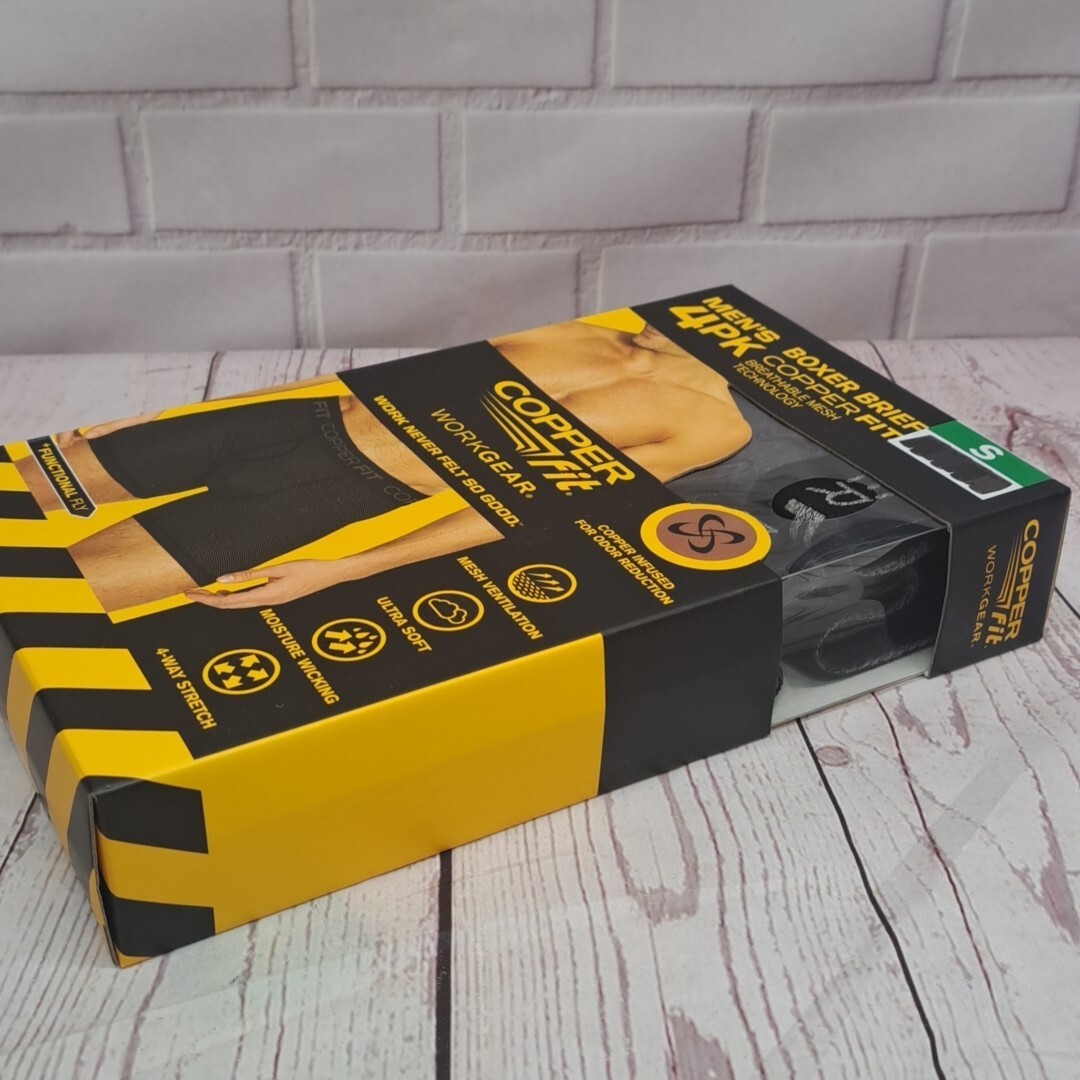 4PK Copper Fit Mens Performance Workgear Boxer Briefs S 28-30 Copper Infused