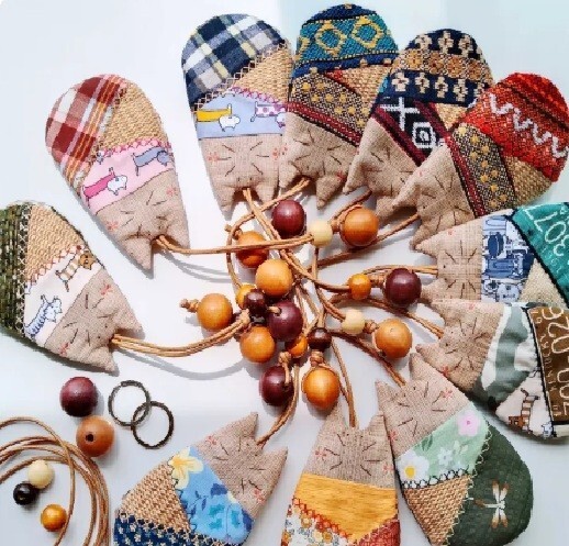 Material: Japanese Cotton + Woven Fabric + Wooden bead