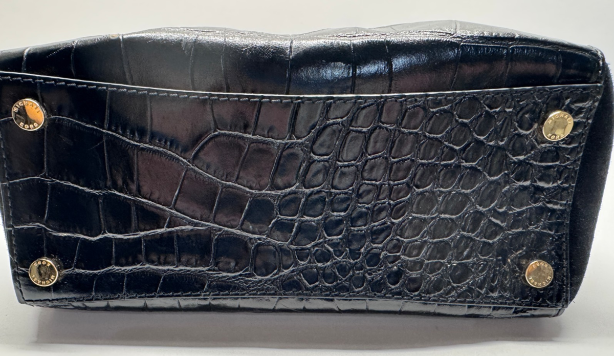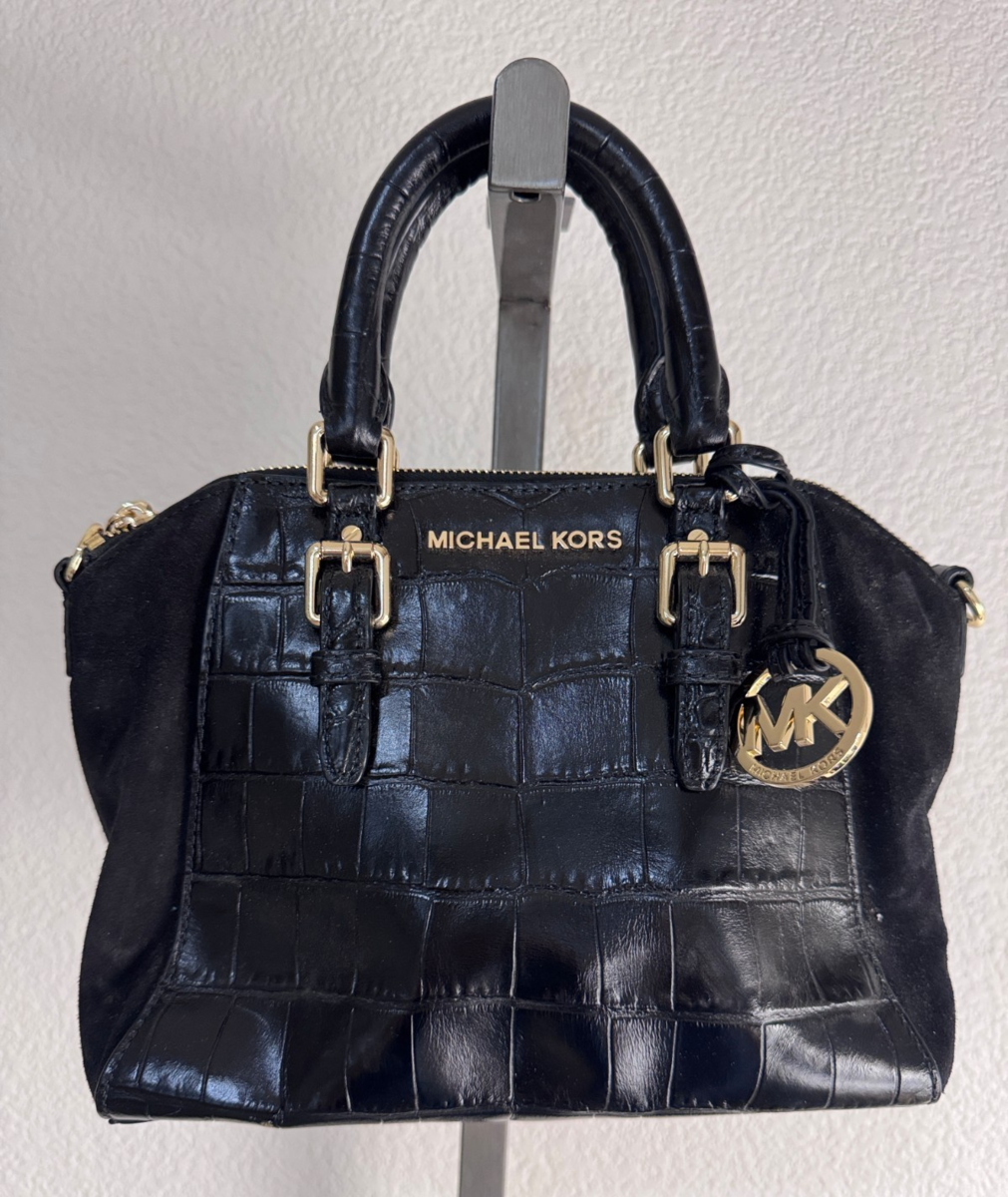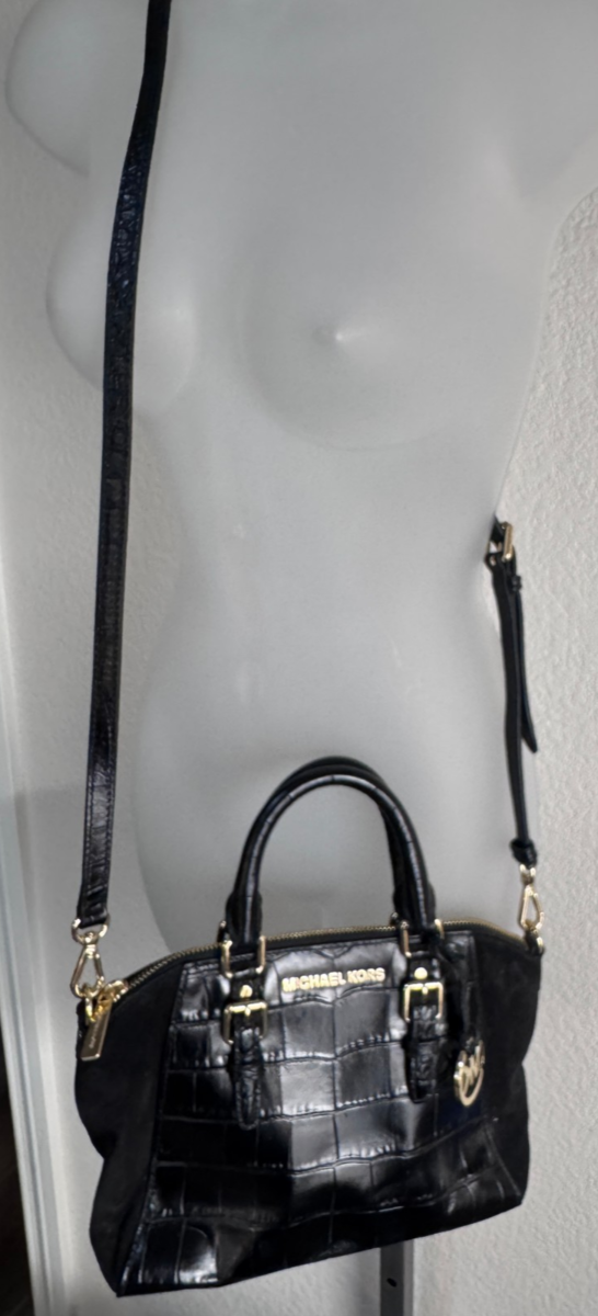 Michael Kors Black Croc Embossed Leather Crossbody Satchel Handbag