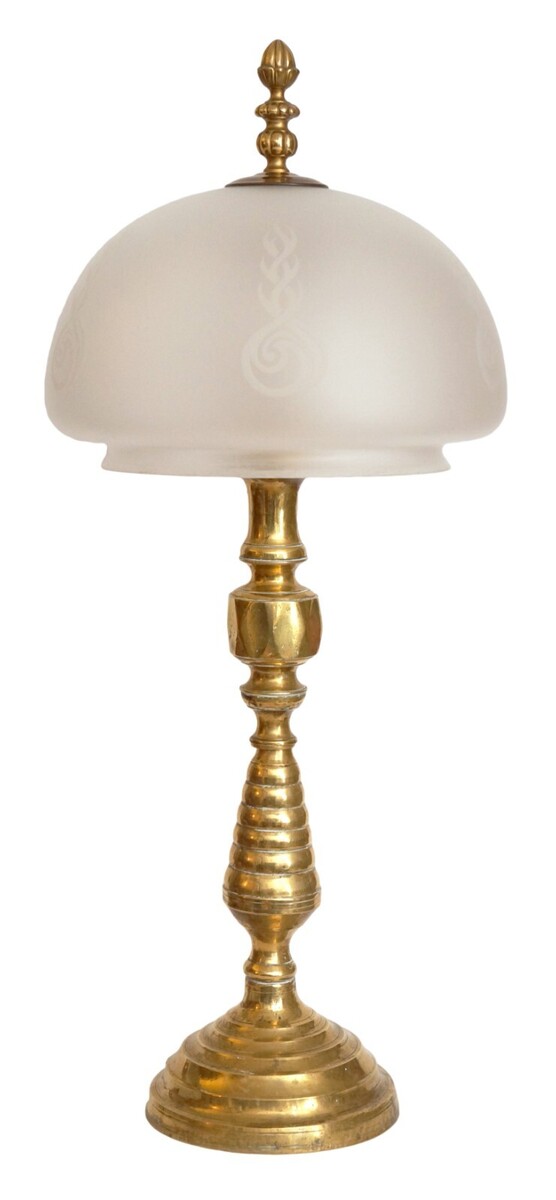 Elegant Art Nouveau brass table lamp mushroom lamp brass lamp antique glass (No.
