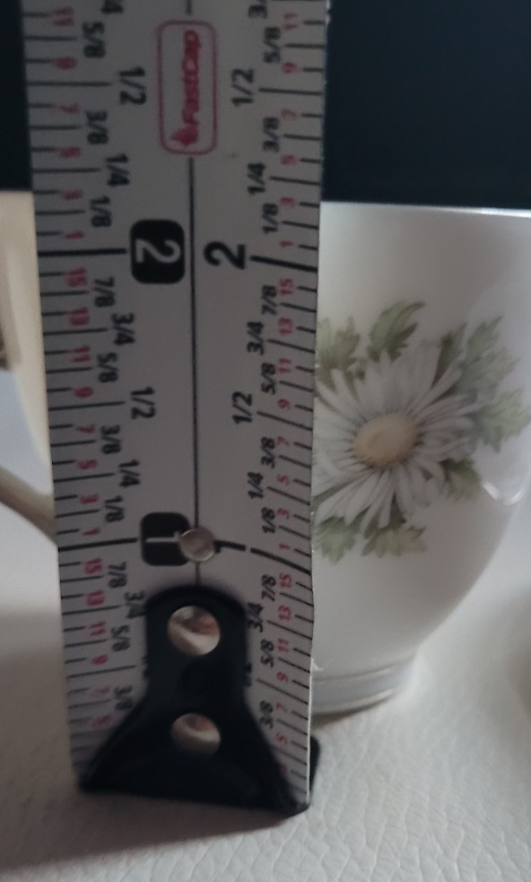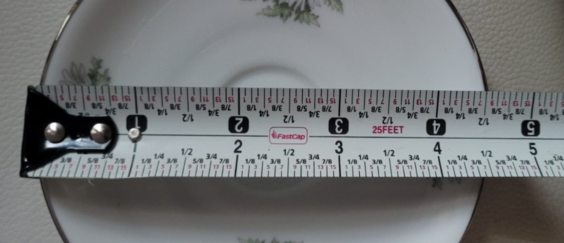 This teacup and saucer set is in good used condition. There are no chips or cracks that I found. Measurements are in the photos.