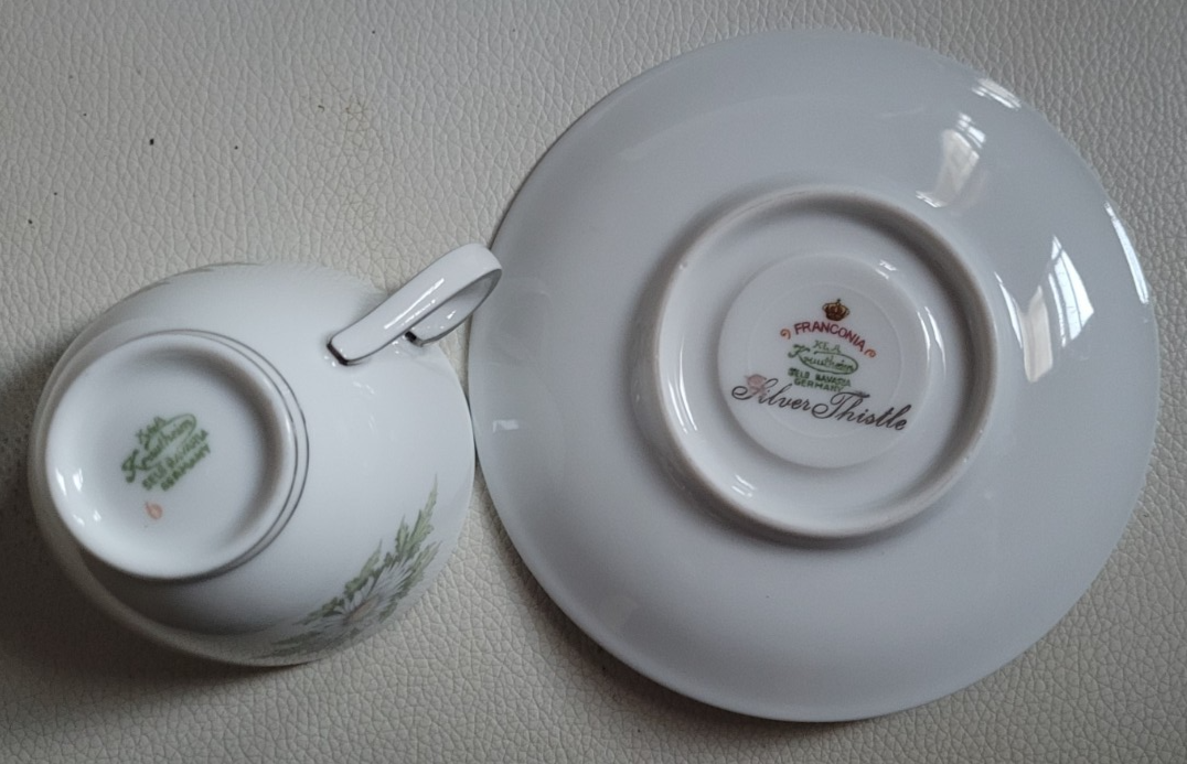 2 Pcs. Teacup Saucer Set Silver Thistle Franconia Flowers Selb Bavaria