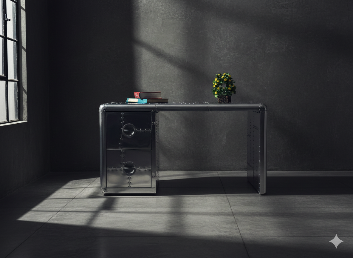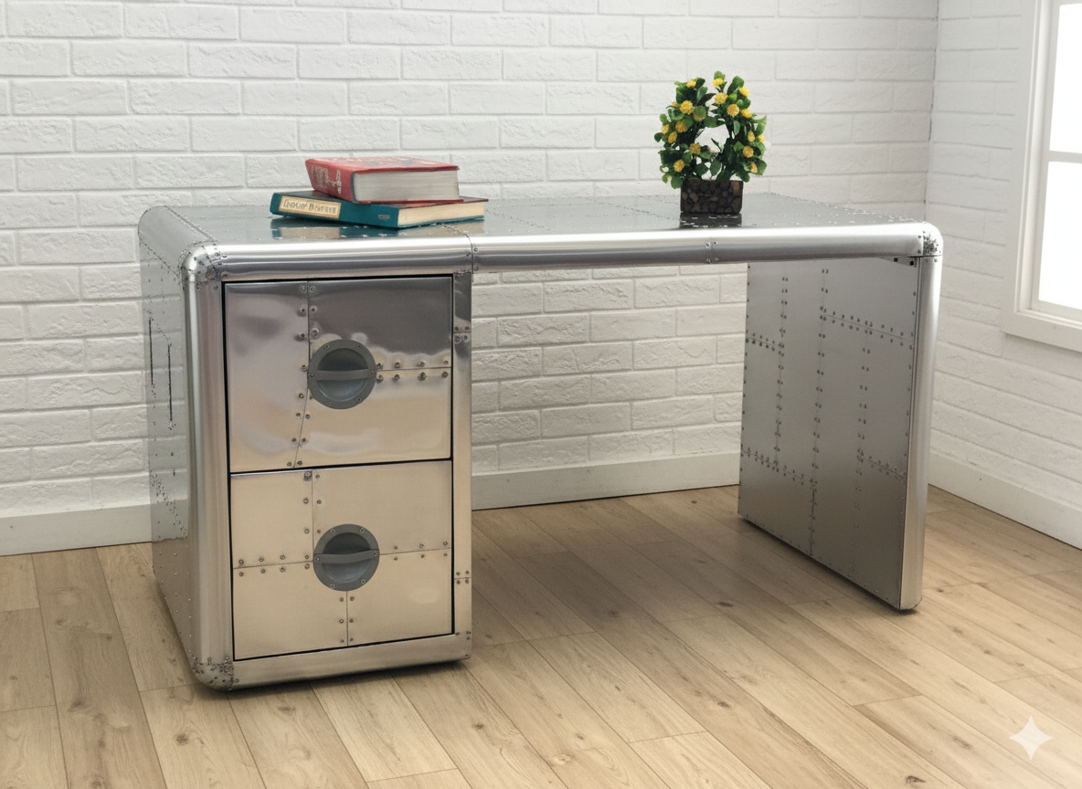 Aluminium Aviator Desk 2-Drawer Industrial Home & Office