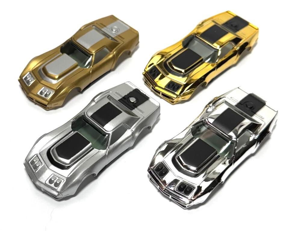 4pc Silver& Gold Metal Flake& Chrome AFX'tras HO Slot Car A/P Corvette Body Lot