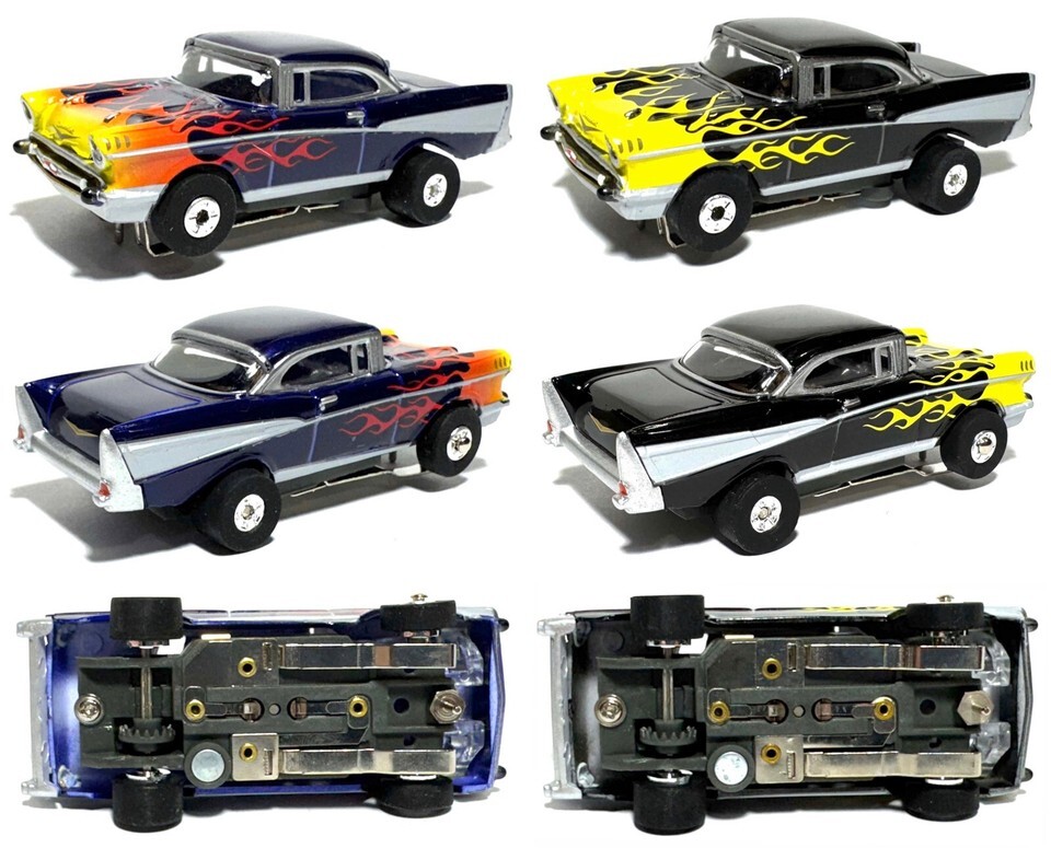 2pc T-Jet Thunderjet-Like Ultra G1957 Chevy Bel Air Flamed 2dr Coupe Fast+Sticky