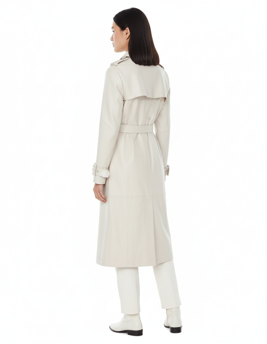 Handmade Stylish White Women's Coat Trench Leather Genuine Lambskin Casual Party