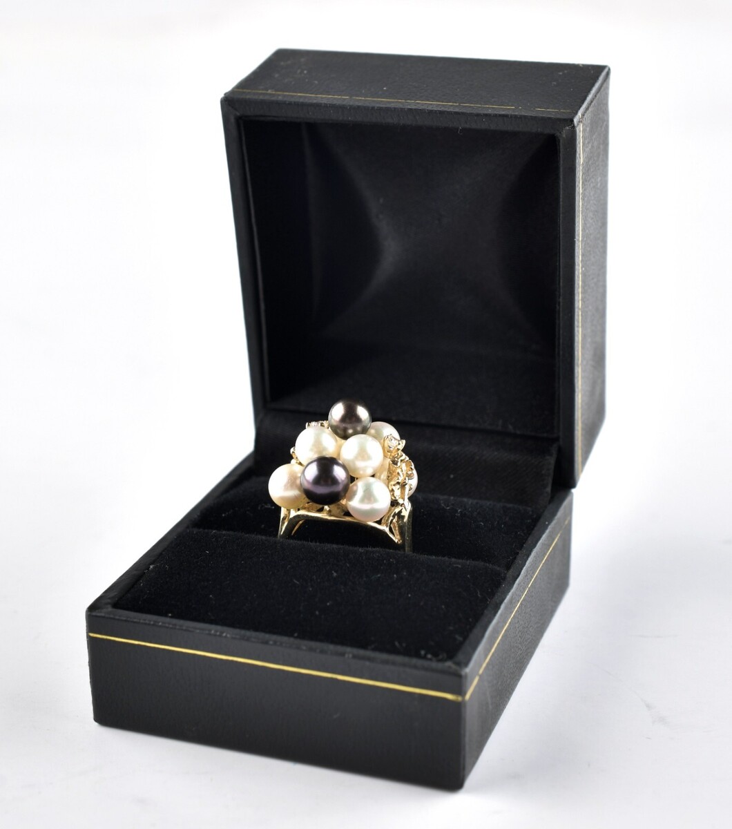 *14k Yellow Gold Diamond Natural Pearl Ring Size 5