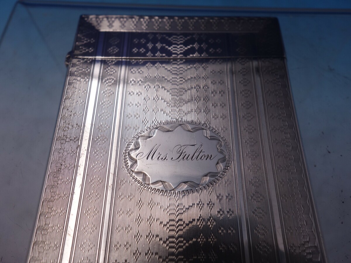 Albert Coles Coin Silver Business Card Case Engine Turned Engraved (#6503)