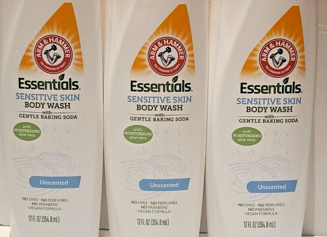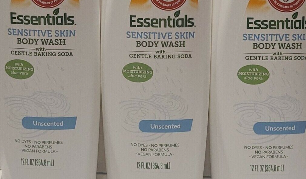 4 Arm & Essentials Sensitive Skin Body Wash w/ Gentle Baking Soda Unscented 12oz