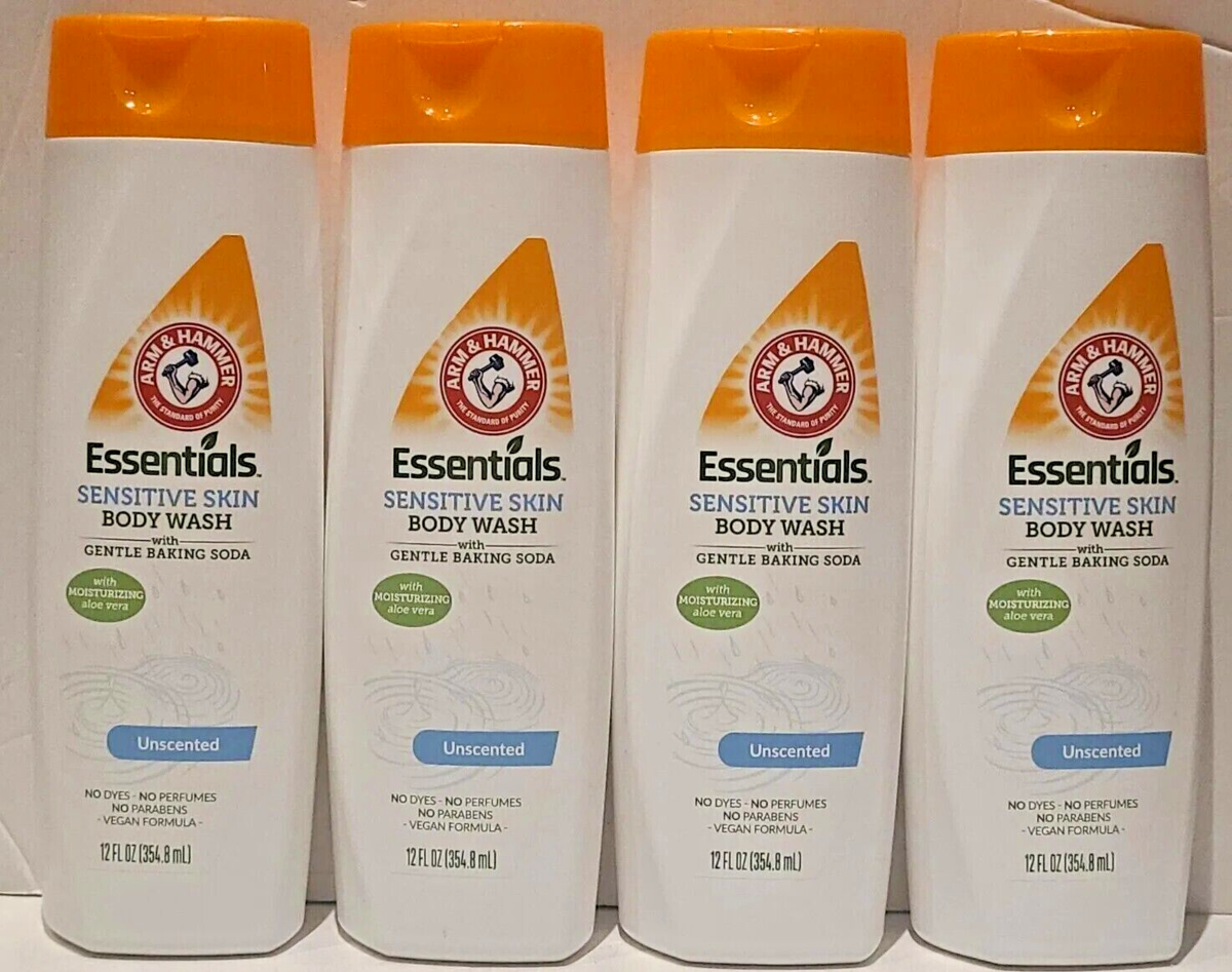 LOT 4 x Arm Essentials Sensitive Skin Body Wash w/ Gentle Baking Soda Unscented 12 oz Each