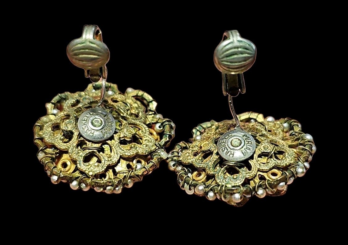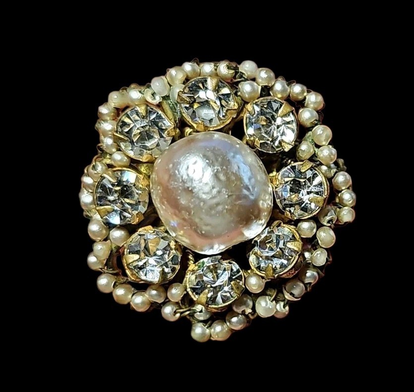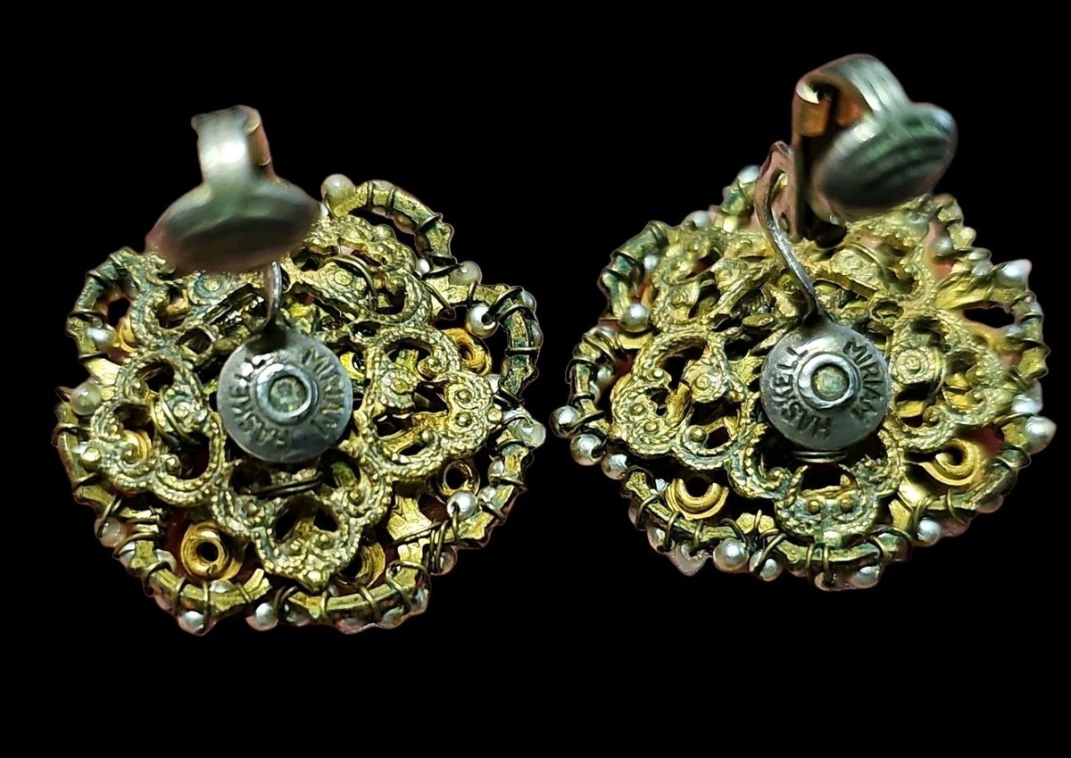 Vintage Signed Miriam Haskell Mabe Pearl Rhinestone Clip On Earrings