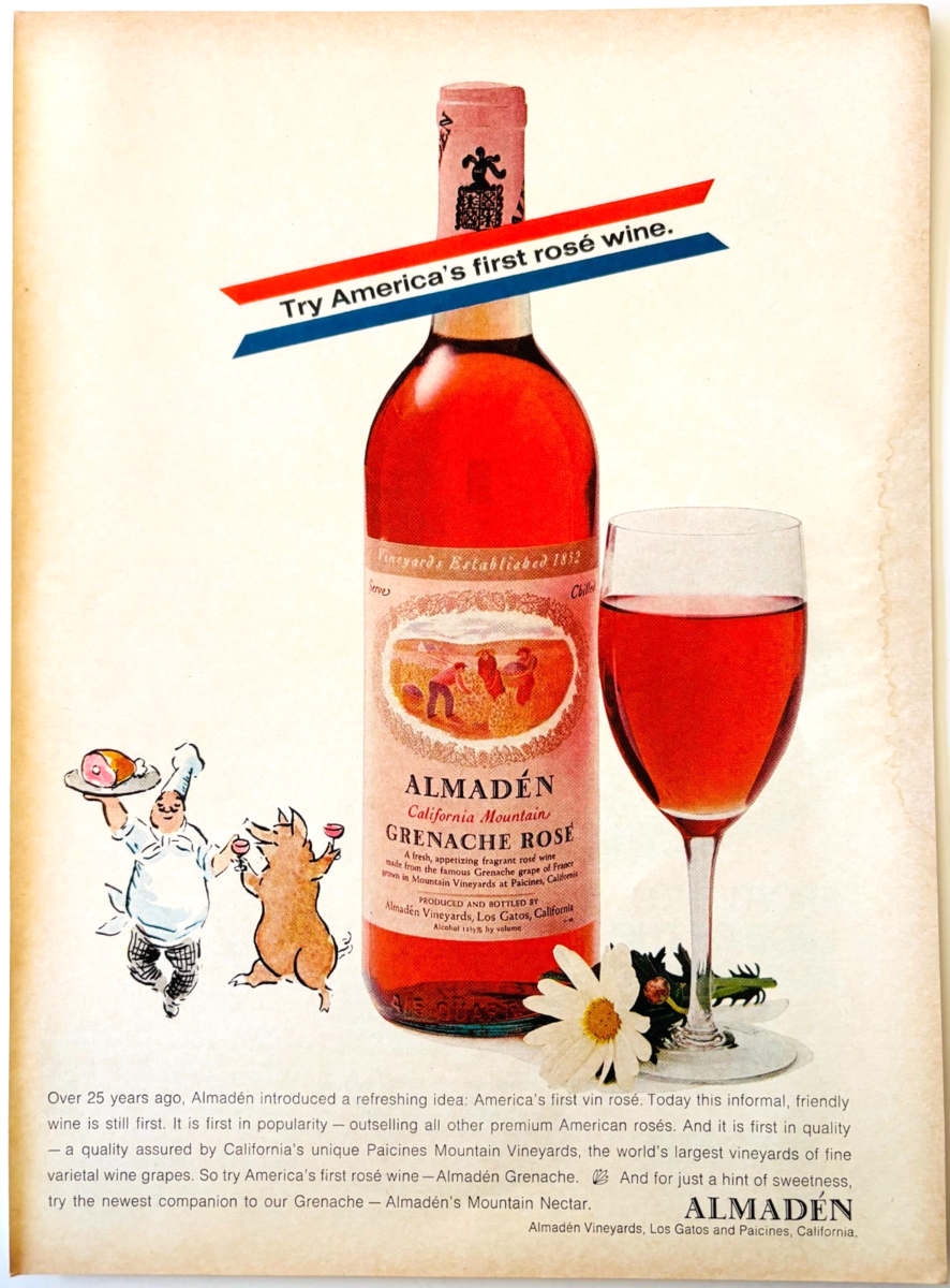 1970 Almaden Grenache Rose Wine Advertisement Vintage California Winery DWW11A