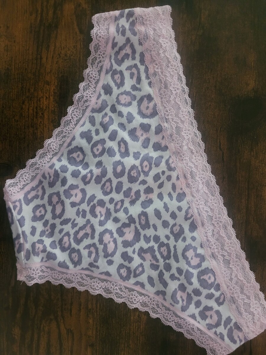 The product is a pair of Victoria's Secret medium-sized panties, featuring an animal print pattern in a multicolor design. Made of cotton material, these cheeky style panties have a low rise vintage look. Perfect for women looking for comfortable and stylish underwear options in a size M.