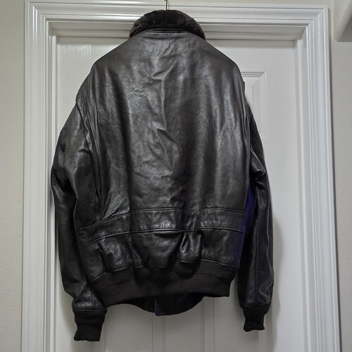 Stunning Condition Vintage Handcrafted by Sporty's Pilot Shop US NAVY TYPE G-1 Brown Supple Leather Flight Jacket - Men's Tag Size 50 L. Actual measurements: 58" chest, 29" length, 23" across shoulders, 20.5" underarm seam, 28.5" outerarm seam from shoulders, 35" neck seam to wrist cuff. Full zip, multi pockets. Made in USA. (4) patches 1 not attached + Name patch: L. L. Mayhew LT USNR.