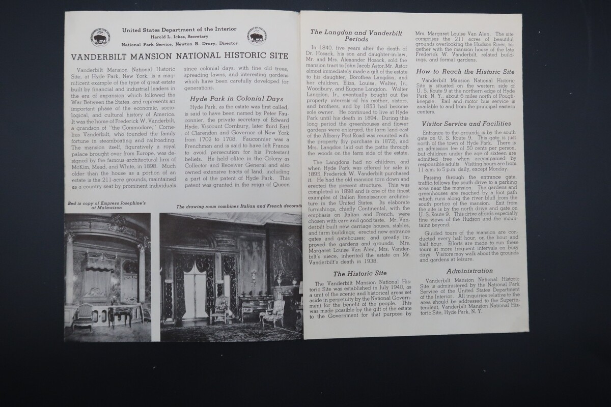 Vtg Vanderbuilt Mansion National Historic Site Original brochure 1941