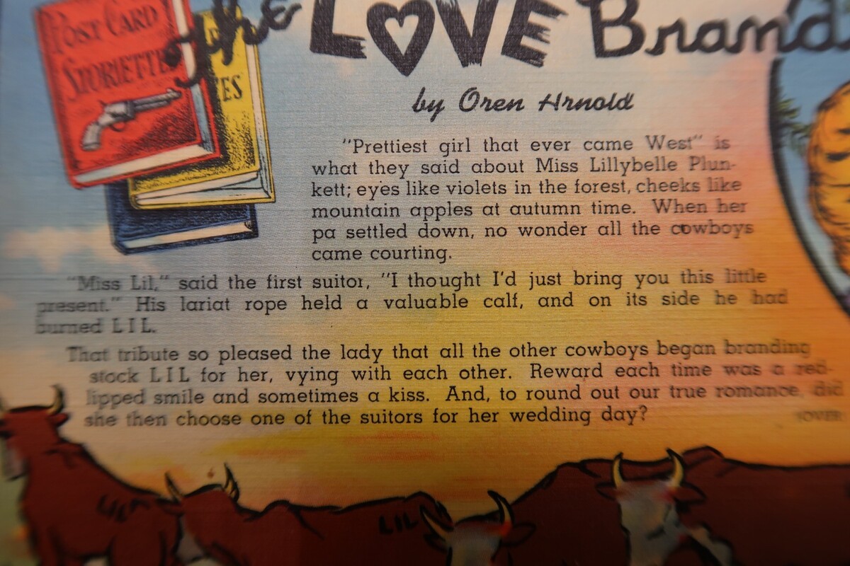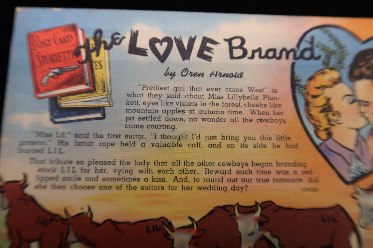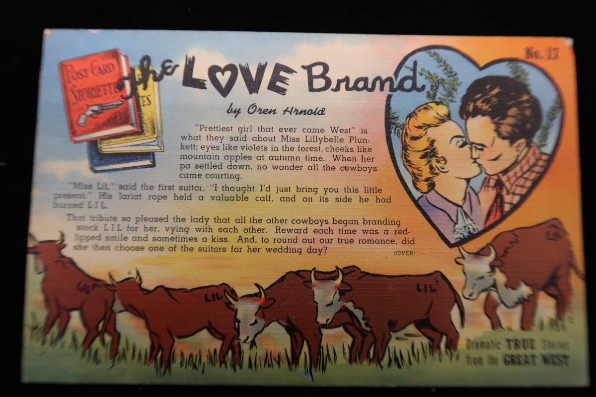 VTG Linen Postcard #17 Love Brand Oren Arnold Dramatic True Stories Wild West
