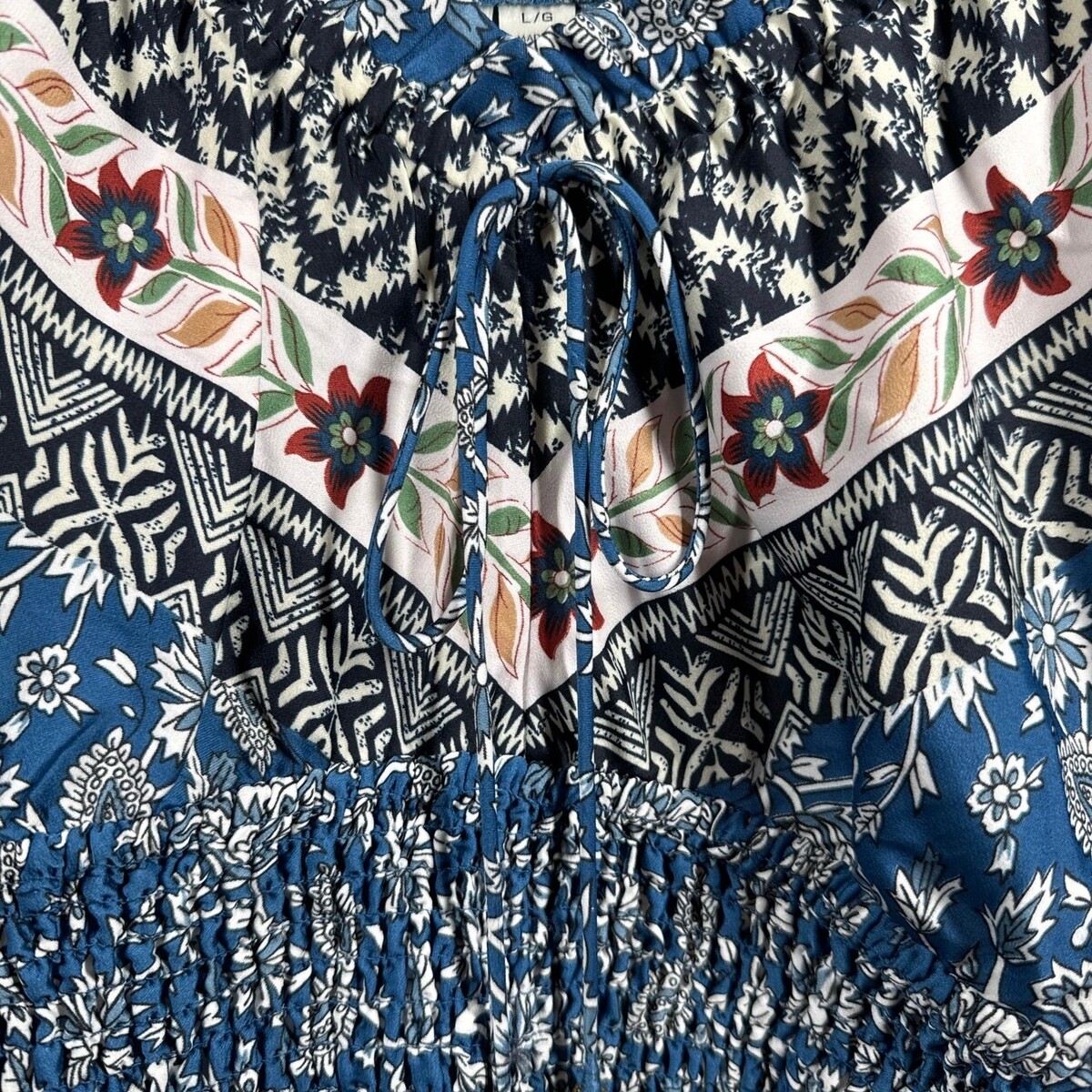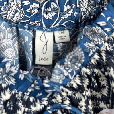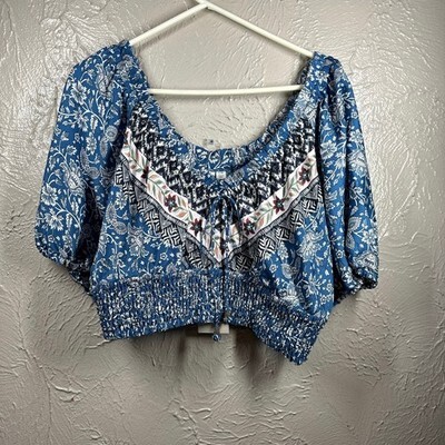 NWT Joie Blue Purple Tie Front Half Sleeve Floral Crop Top Size Large