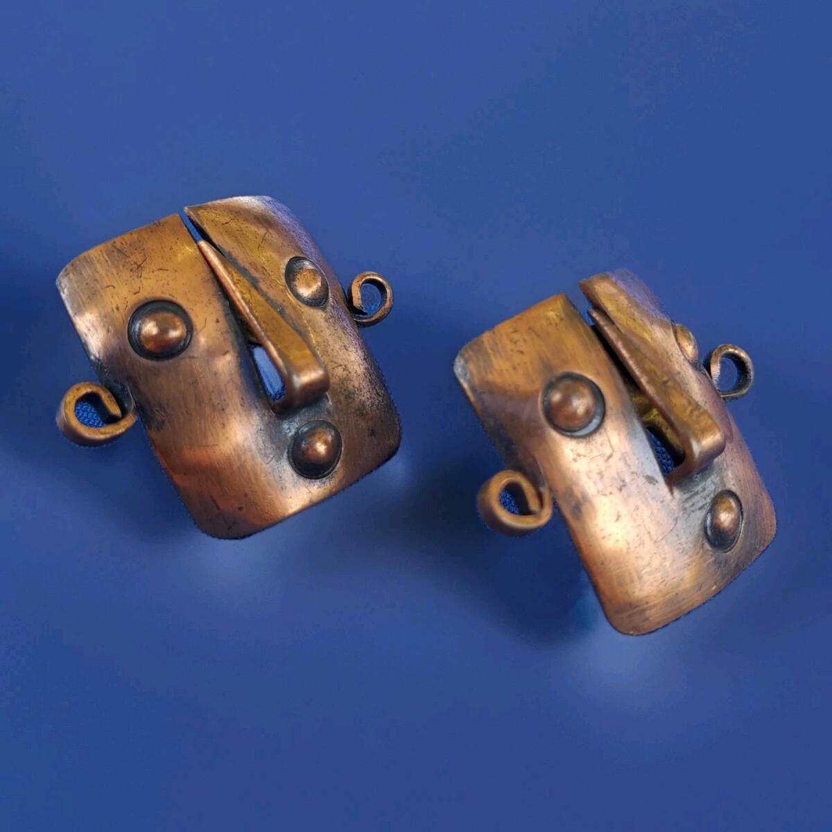 Vintage Original 1940s Modernist Copper Earrings by Pedro Pujol.