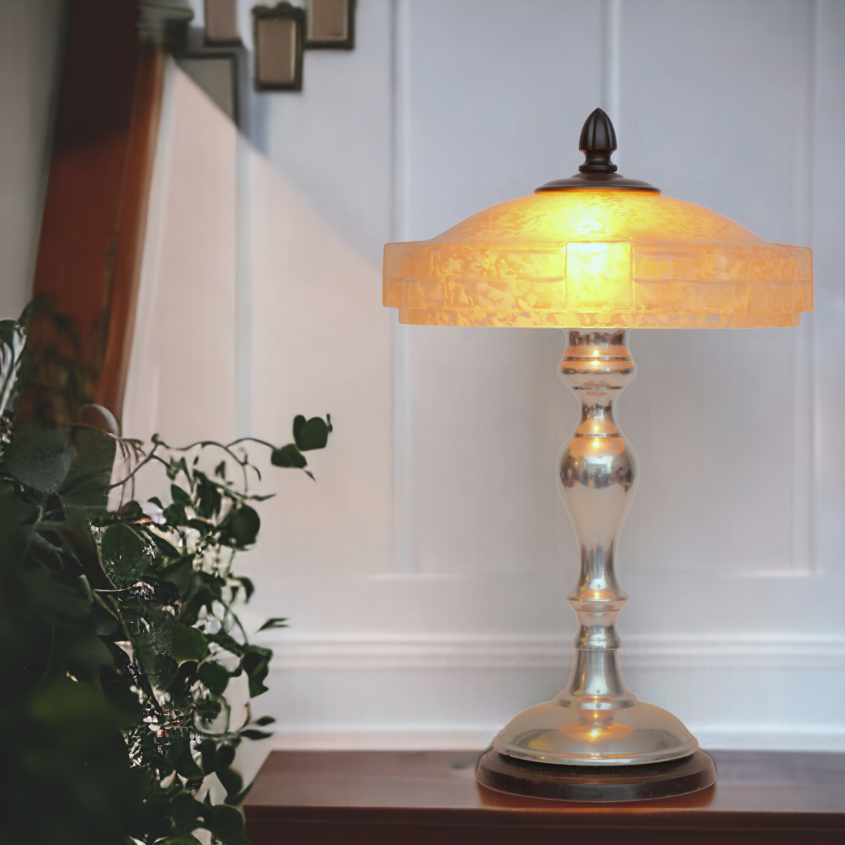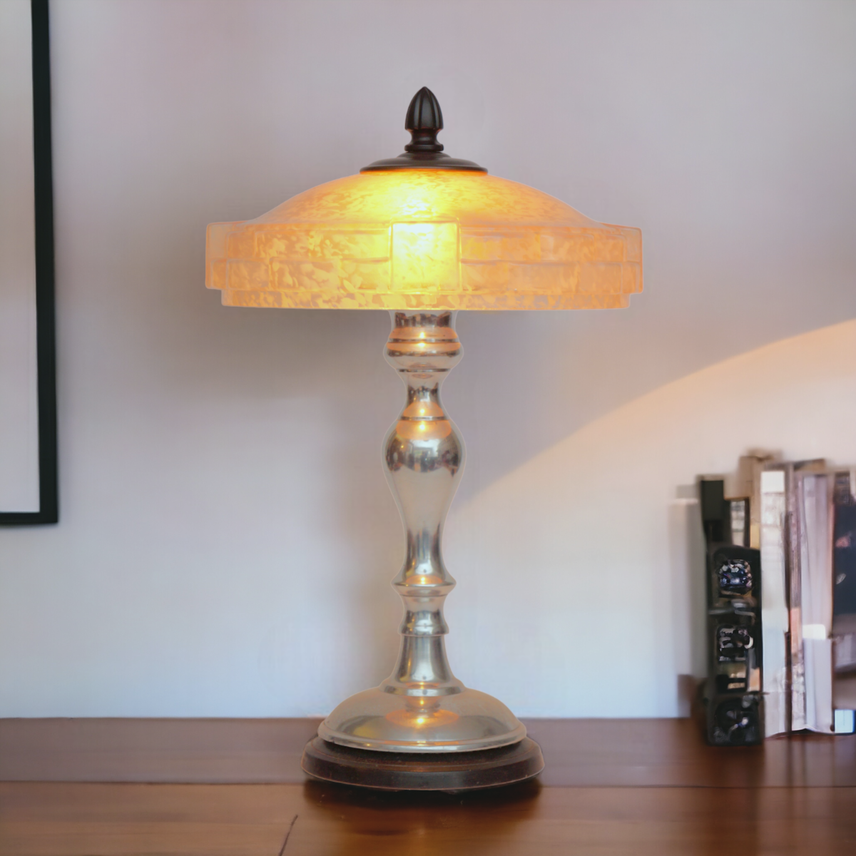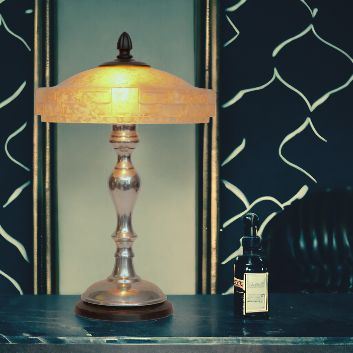 Built in 2024 from vintage lamp parts, in the classic art deco look.