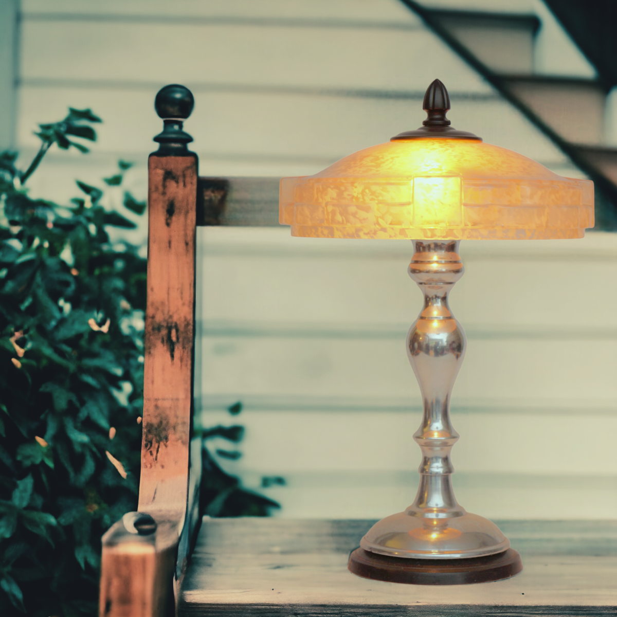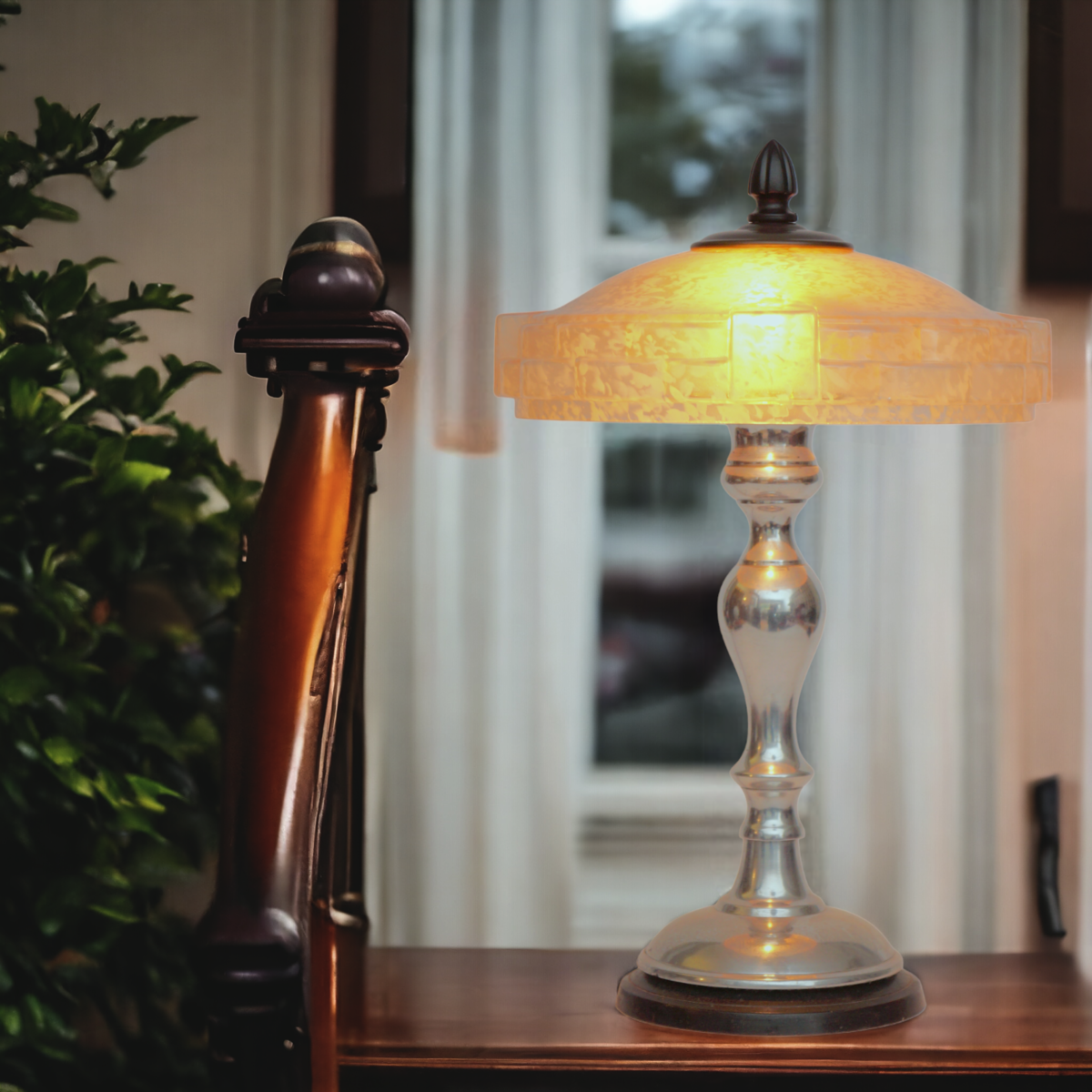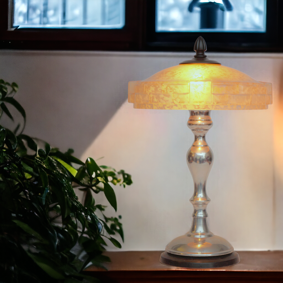 Built in 2024 from vintage lamp parts, in the classic art deco look.